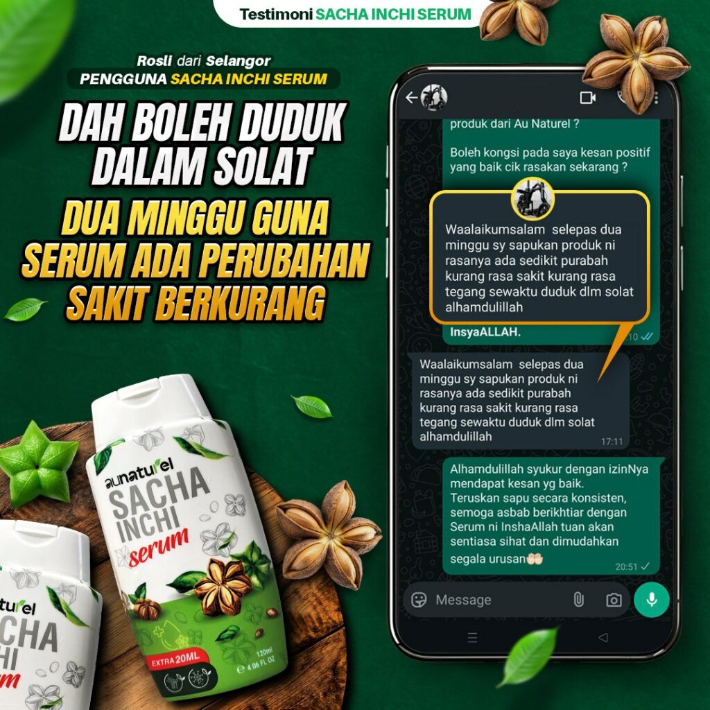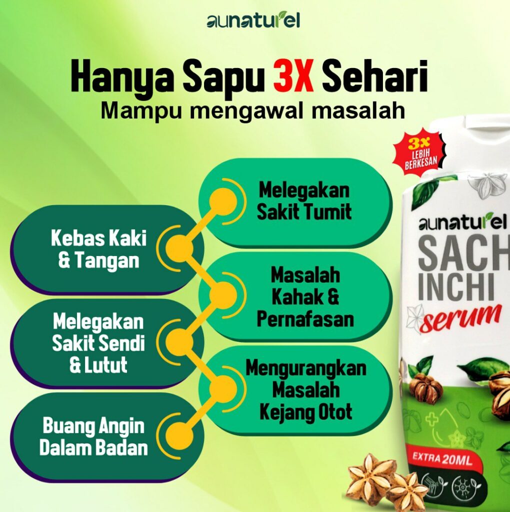Serum Sacha Inchi Au Naturel Gabungan Lengkap Minyak Omega 3,6 & 9, Minyak Pudina, Minyak Kayu Putih, Minyak kelapa, Minyak Argan serta Ekstrak Aloe Vera.